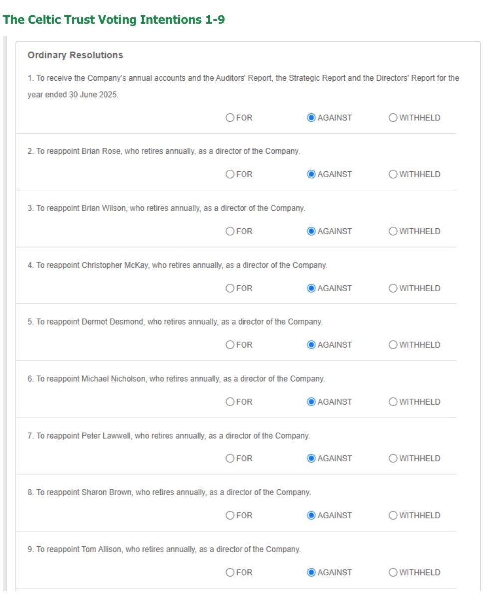 At a General Meeting of the Celtic Trust on Tuesday 28th October, the voting intentions for all 17[…]